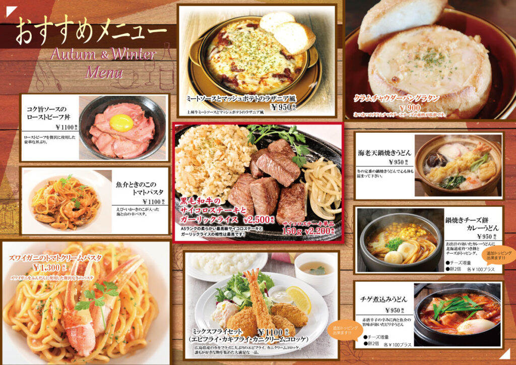 ★秋冬メニューのご案内★